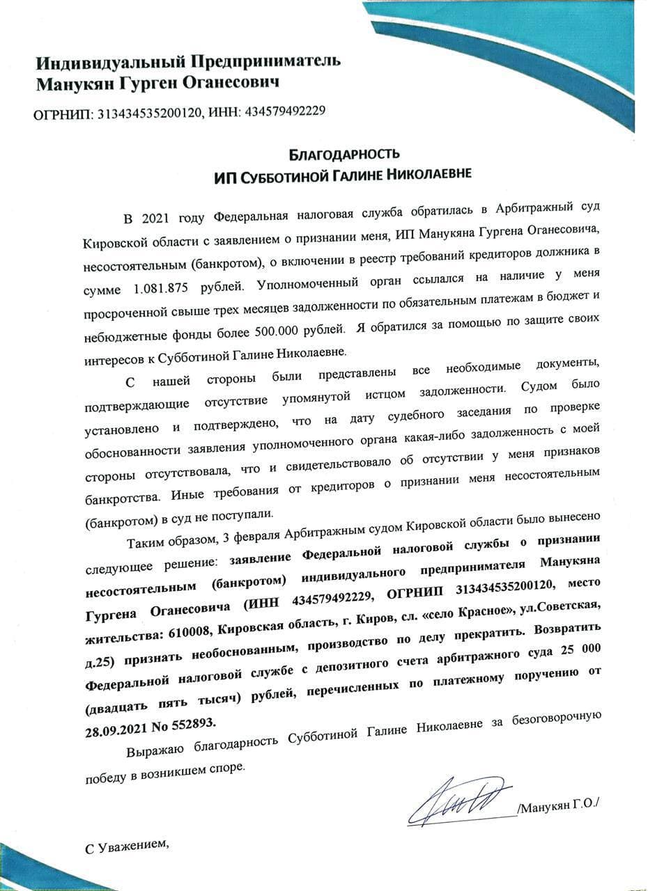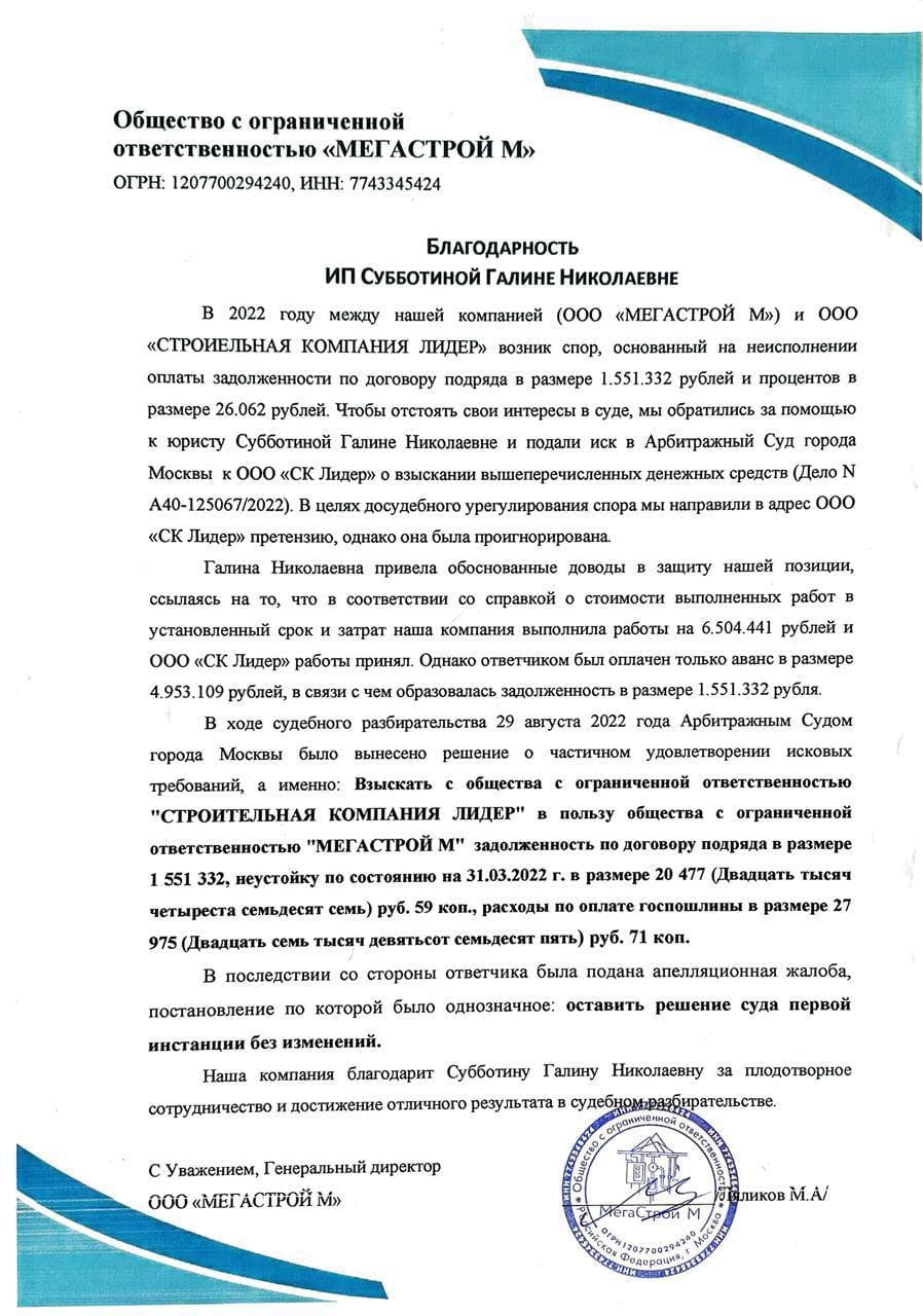 Юрист по коммерческой недвижимости и арбитражным спорам — Субботина Галина Николаевна